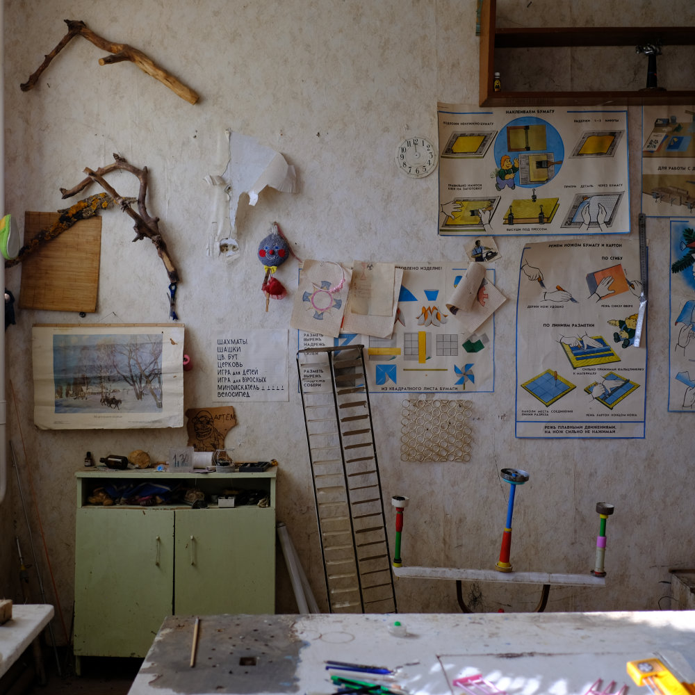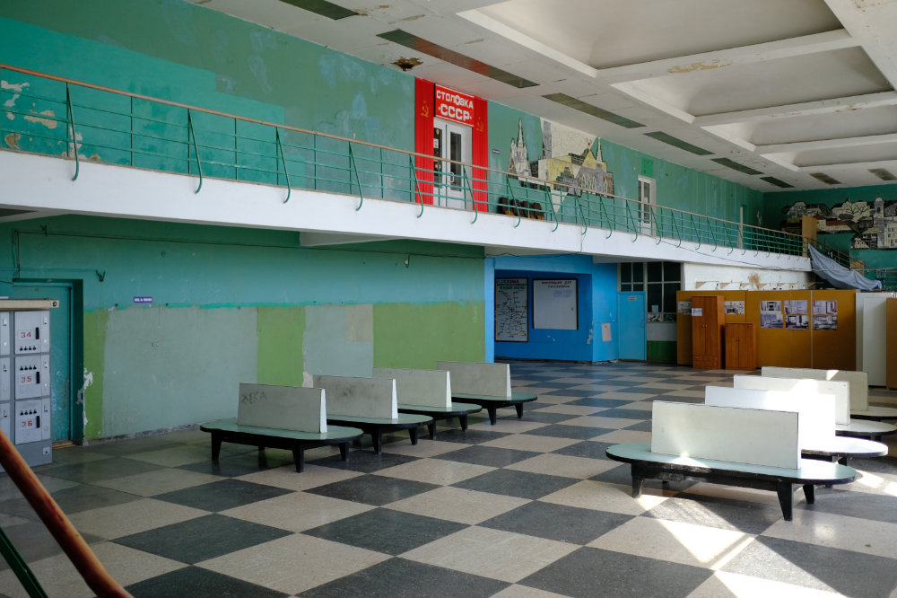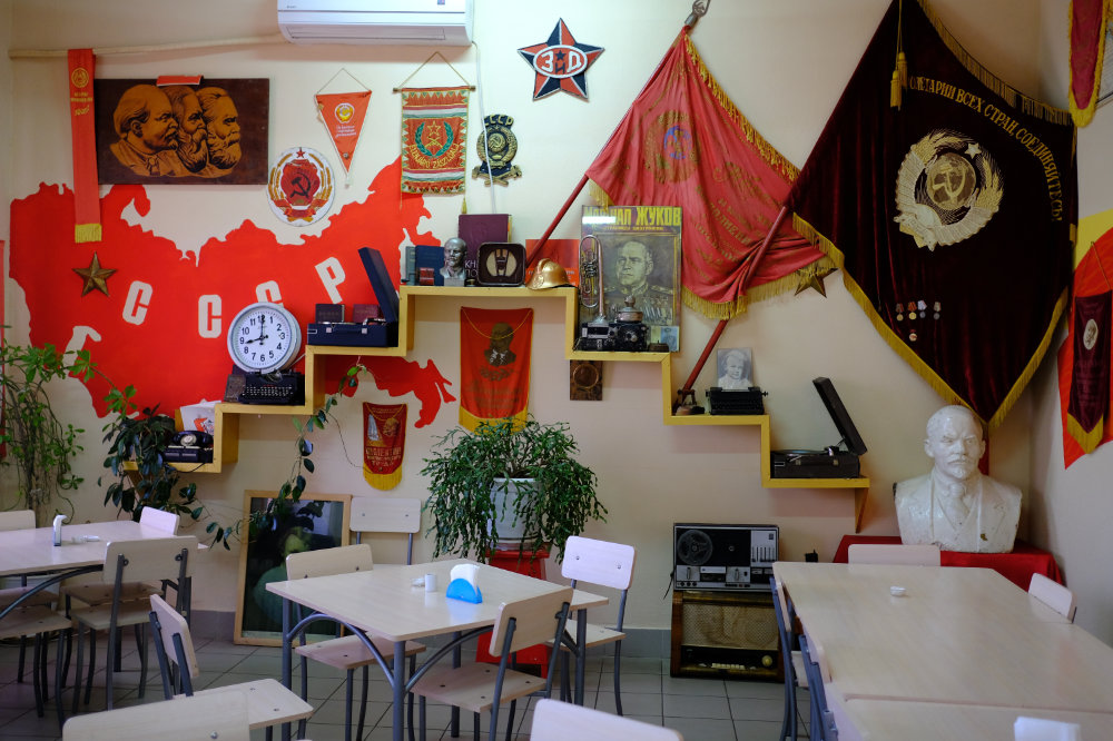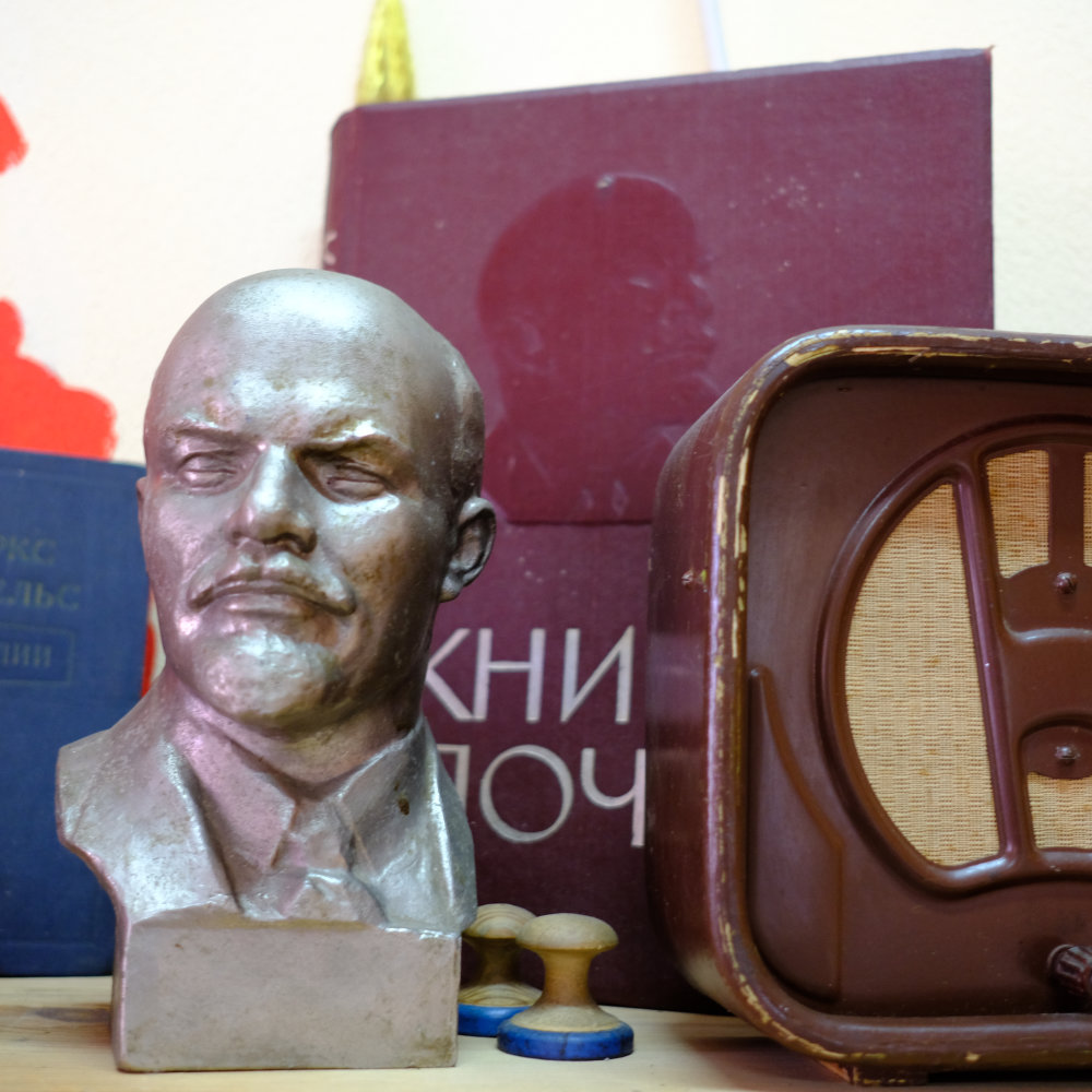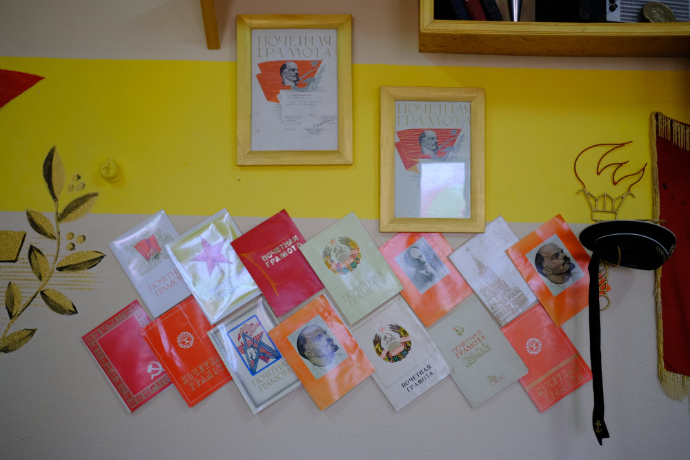 Wir gehen durch das Gebäude, ich fotografiere wie wild, bin mir aber bewusst, dass das noch nicht alles ist. Ich hatte schon Bilder davon gesehen. Bilder der Sammlung. Die mich fasziniert hat. Wir schreiten von Zimmer zu Zimmer, ich bin erstaunt, dass es in einem Schulhaus einen Zahnarztsessel hat, wir sehen aber auch vieles, was einfach zu einem Schulhaus gehört. Und da dieses in der Sowjetunion gebaut worden ist, begegnen wir einmal mehr Lenin.