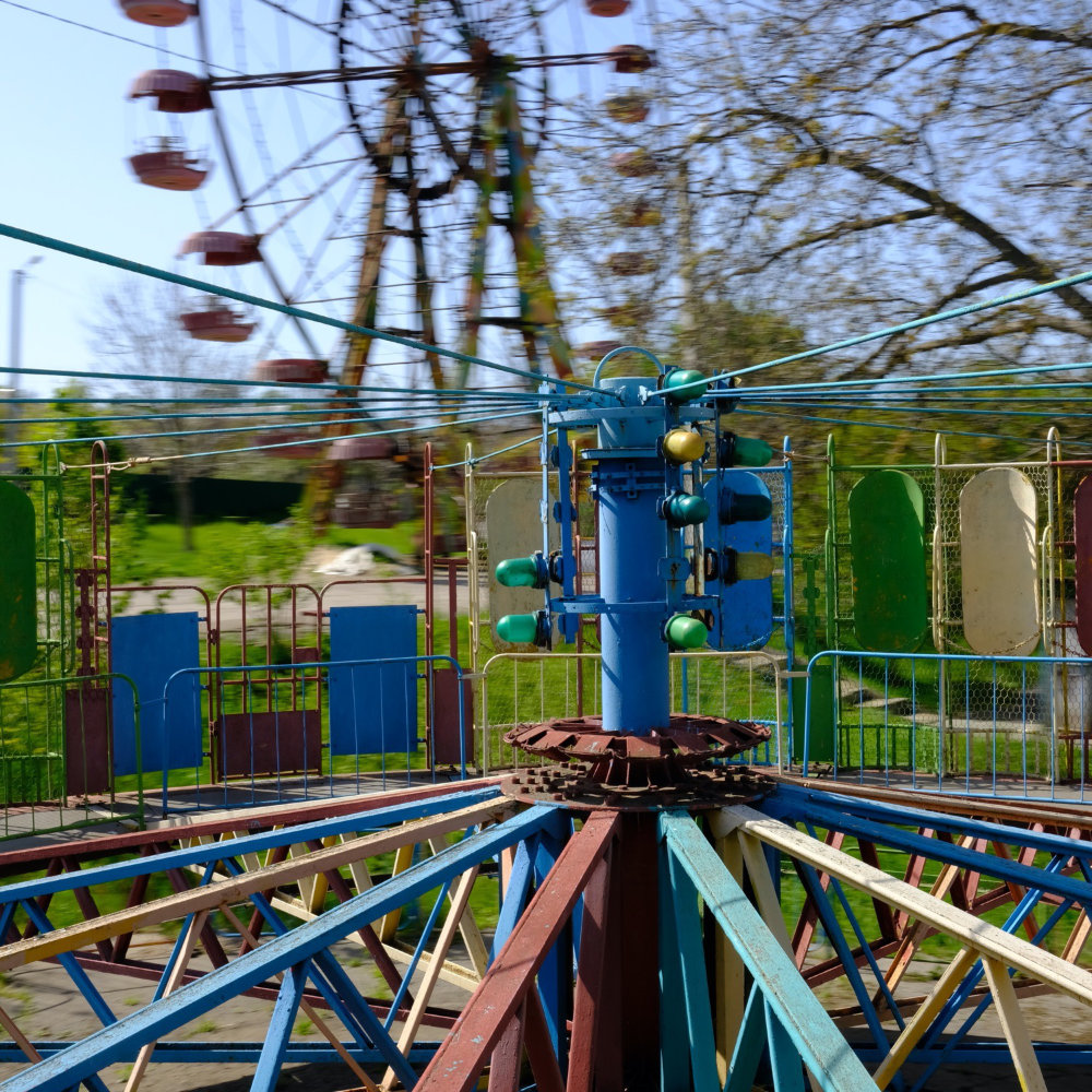 Vielleicht hätte ich das verschmitzte Lächeln von Evghenia ernster nehmen sollen. Sie bezahlt extra für eine Fahrt auf einer Höllenmaschine. Das sei ganz easy. Drehe sich nur. Ich mache den Fehler und stelle mich hin. Eine einfache Kette wird als Sicherung geschlossen, das kann wirklich nur ganz Easy sein. Das Ding beginnt sich zu drehen, erst einfach im Kreis, dann beginnt es sich zu heben. Bald dreht es sich stehend – und ich quasi liegend. Ohne Sicherung. Aber sowjetische Technik ist massiv und ich mache mir vor allem Sorgen um meine Kamera, die ich krampfhaft festhalte. Nach viel zu vielen Umdrehungen lande ich sanft. Ich bin böse auf Evghenia. Aber nur ein klein wenig. Letztlich hat es riesig Spass gemacht!