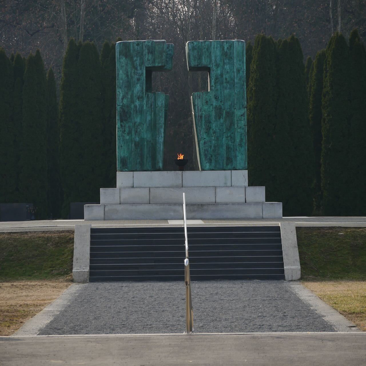Auf einem Friedhof in der Nähe wird zudem mit einer ewigen Flamme Opfern gedacht.