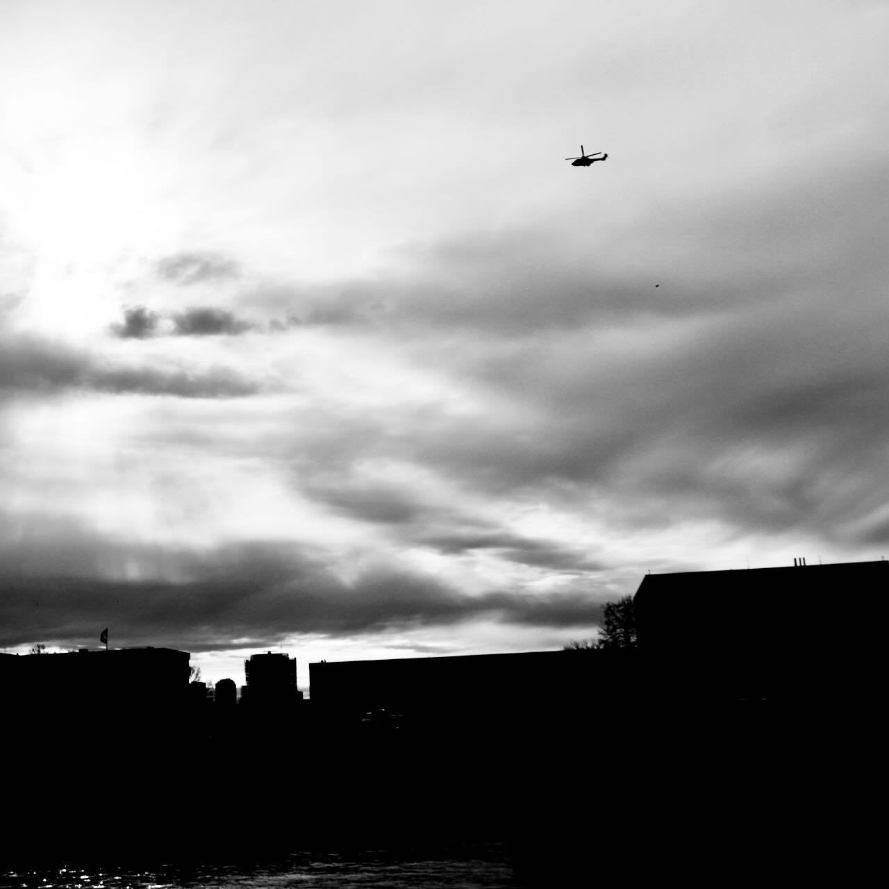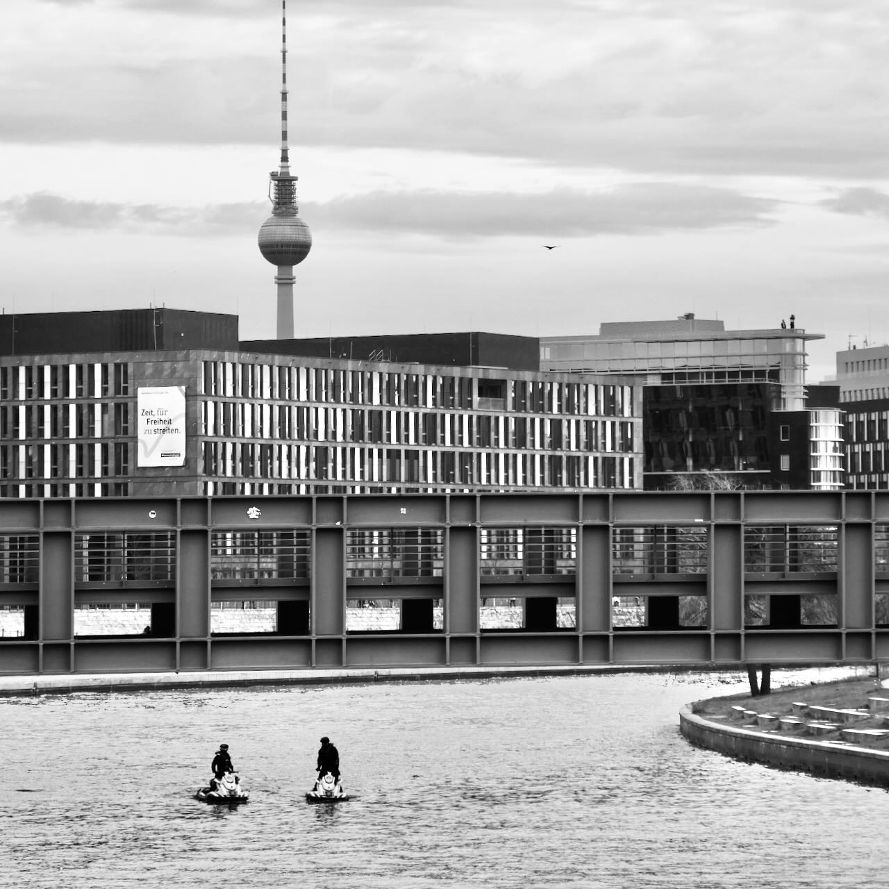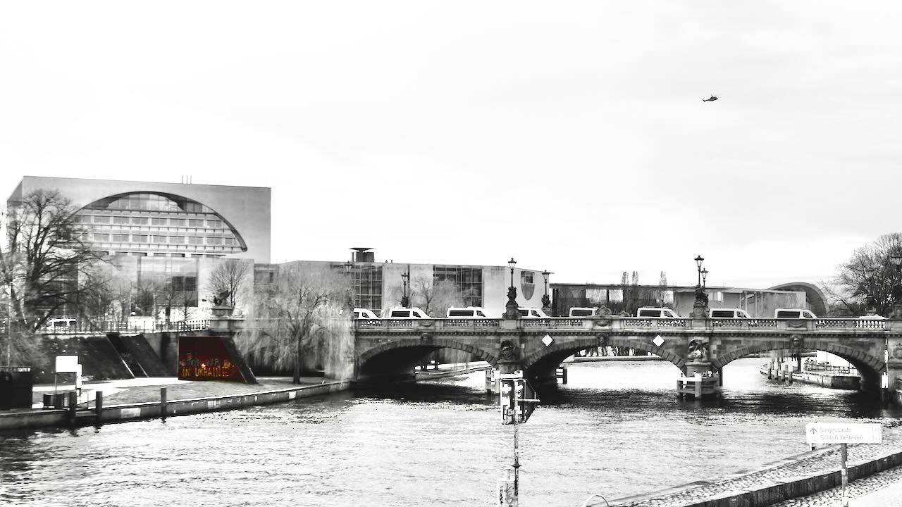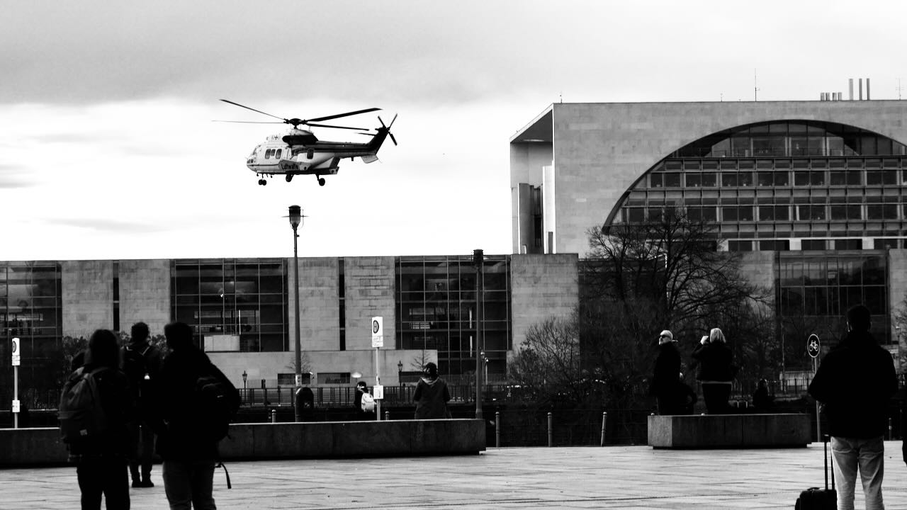 Ein Helikopter nähert sich mit grossem Getöse, landet direkt vor dem Bundeskanzleramt. Es wirkt nicht so, als ob Selenski da drinnen gesessen hätte, aber natürlich ist alles unübersichtlich. Wenig später fahren plötzlich verschiedene Polizeivans auf eine Brücke und halten. Einige andere fahren vorbei. Ein Helikopter kreist über einem anderen Gebäude, plötzlich sind Scharfschützen auf den Dächern zu entdecken. Dann dreht der Helikopter ab und es entspannt sich die Lage. Irgendwann realisiere ich, dass die Passage entlang der Spree wieder geöffnet ist. Alltag ist noch nicht eingekehrt, aber das Sicherheitsdispositiv hat bis dahin funktioniert. Gott sei Dank.
