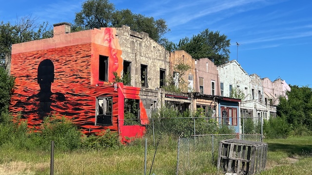Natürlich biege ich auf eine rote Strecke ab und fahre in Richtung Stadt. Schon bald fallen mir Häuser auf, die offensichtlich verlassen sind oder wo ich mir nicht sicher bin, ob sie noch bewohnt sind: es stehen Autos davor, aber die Fenster sind durch Karton oder Holzplatten ersetzt oder die Häuser halb verfallen. Bald fühle ich mich nicht nach Detroit zurückversetzt, nein, es ist viel schlimmer. Gefühlt jedes 5. Haus ist – bewohnt.