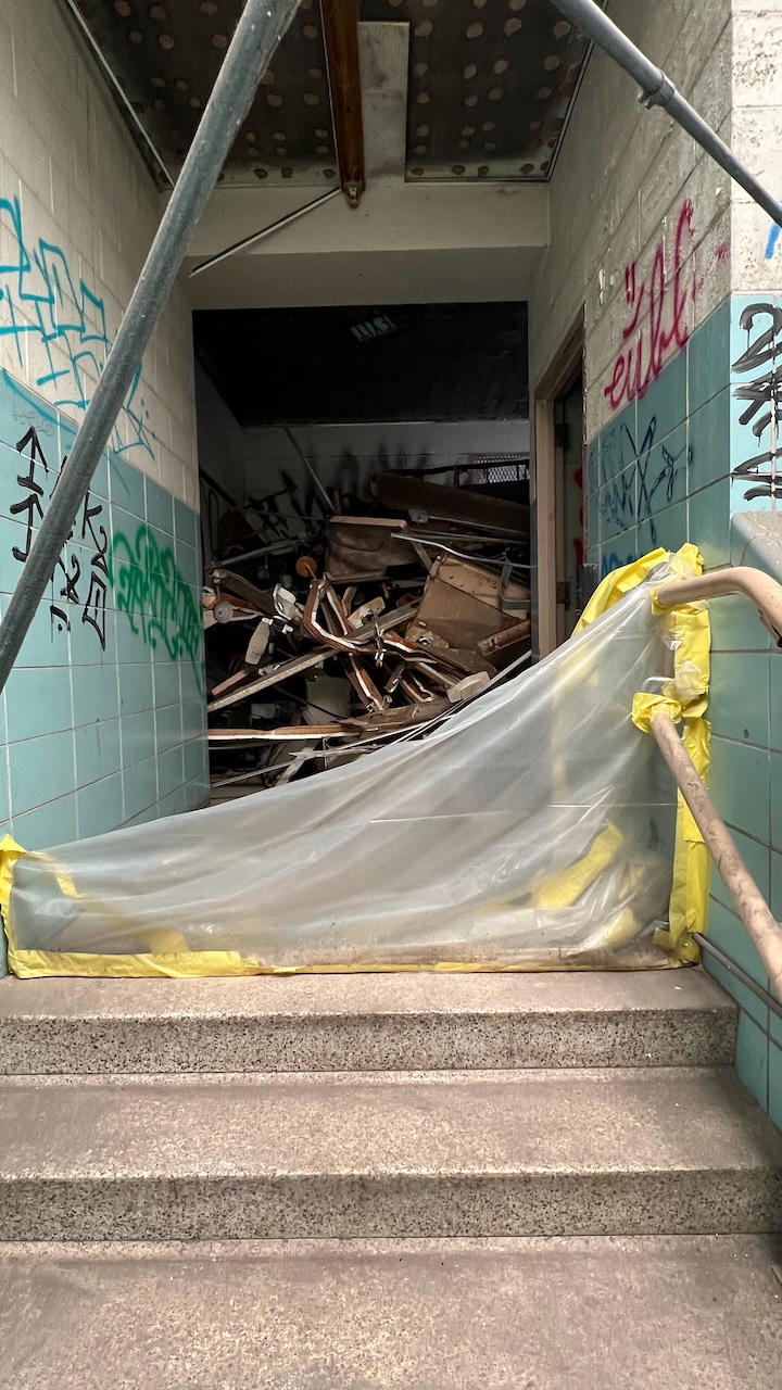 Der Zerfall dieser Stadt erschüttert mich. Ich habe schon vieles gesehen, doch das hier ist wirklich krass. Und so habe ich die doofe Idee, wenigstens noch etwas in der Stadt zu konsumieren. Ich habe auf dem Hinweg einen KFC gesehen und will da Mittag essen, auch wenn es dazu noch etwas früh ist. Ich schliesse mein Velo ab, gehe zur Tür, geschlossen. Ich schaue auf die Uhr: seit 20 Minuten müsste er geöffnet sein. Ich gehe auf die andere Seite, geschlossen. Dann halt nicht. Ich fahre weiter und sehe auf der App, dass es am Rande der Stadt noch einen Subway haben soll. Fahre ich halt dahin. Doch der existiert nicht mehr und die alternative Fastfood Bude hat noch geschlossen.