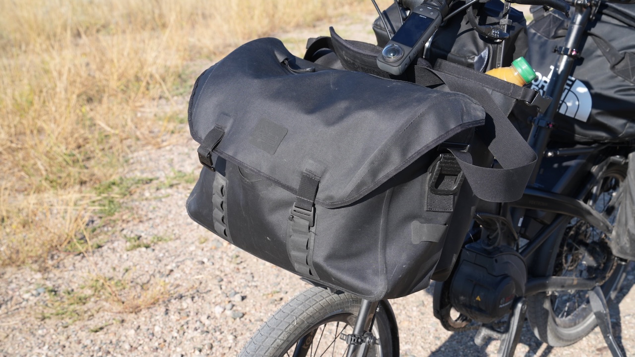In New York habe ich mir noch eine eigentlich überflüssige Krimskramstasche gekauft, die am Lenker angemacht ist, allerdings in Richtung Sattel. Darin befinden sich Besteck, Sonnencreme, Powerbank, Mückenspray etc. Praktisch.