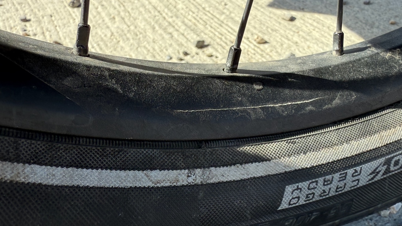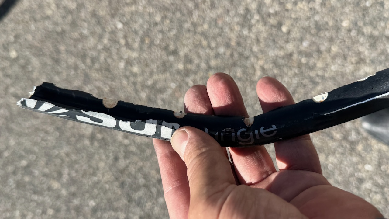 Gut. Die neue Felge ist gebrochen. Geborsten. Explodiert. Wenige hundert Meter nach dem Platten. ich hatte mich so gefreut als die in St. George eine Lösung gefunden hatten. Der Reifen war zwar sehr teuer, ich hatte aber geglaubt, dass er auch sehr gut ist. Hatte immerhin Platz für 12 Gänge, passte für mein Velo, war glaubhaft. Und vor allem: die hatten einen Reifen an Lager. Alle anderen Geschäfte im Ort nicht. Aber: war wohl doch ein Billigprodukt. Oder sonst was schief damit. Schon, dass der Pneu daran geklebt hat, irgendwas war da faul. Vermutlich habe ich die Felge beim Pneu abziehen kaputt gemacht, immerhin hielt er danach nur noch wenige hundert Meter, maximal Kilometer. Was natürlich nicht geschehen dürfte, zumal die Felge an mehreren Orten Sprünge zeigte. Tönt nach, keine Ahnung. Schon besser.