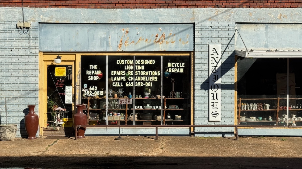 Greenwood ist eine vermutlich recht typische Kleinstadt im Mississippidelta. Es hat eine hübsche Innenstadt mit vielen kleinen Läden, es hatte auch eine gut sortierte Buchhandlung, die leider wegen eines Brandes zumindest vorübergehend geschlossen ist. An der Main Street liegt das berühmte Alluvian-Hotel, das eine gehobene Kundschaft anspricht. Überall im Ort findet man auch schöne Bauten aus dem 19. und 20. Jahrhundert, wo Greenwood Zentrum der Baumwolle war.