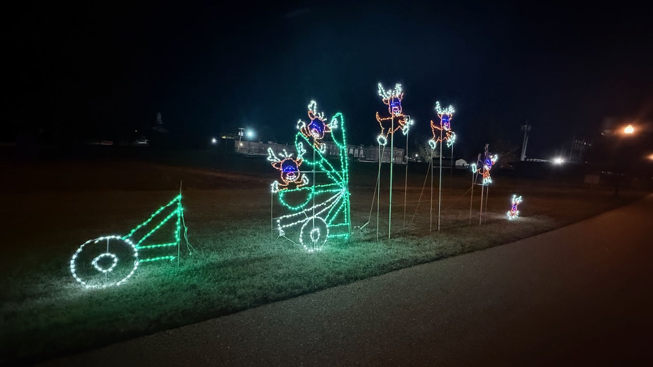 Die Kleinstadt strahlt einen gewissen Wohlstand aus. Es hat sehr viele Parkbänke, die ausser mir kaum jemand zu nutzen scheint, einen schönen Velo- und Fussgängerweg und diesen Freitag hat es eine Eisbahn. Ohne Eis, aber mit Schlittschuhen. Überall hängen Weihnachtsbeleuchtung oder weihnachtliche Dekoration, was angesichts der herbstlichen Temperaturen und des permanenten Sonnenscheins für mich etwas absurd wirkt. Natürlich nur meine Wahrnehmung.