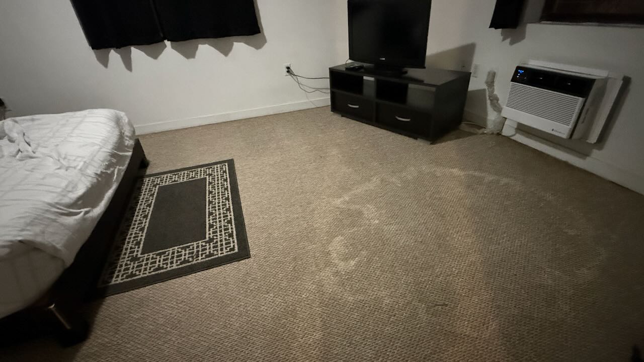Es klopft. Zwei Herren. Begutachten den Teppich. Fünf Minuten später klopfen sie nochmals. Begutachten die Wände. Ah. Sind zuständig für das Haus. 20 Minuten später klopft es erneut. Die Reinigungslady. „Checkout“. Ich: nein. Mir wurde soeben mitgeteilt, dass ich noch hier bleiben kann. Leider spricht sie nur Spanisch und mein Spanisch hat sich verabschiedet. Ich kann kein Wort mehr sprechen, verstehen tue ich manchmal ein Wort. Sie beginnt das Zimmer auszuräumen, ich werde etwas ruppig, was soll das? Bis ich realisiere: sie wollen den Teppich reinigen.