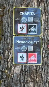 Aber Cerro Otto. Hat sogar eine Seilbahn hinauf. Ich nehme das Bike. Allzu lange bleibe ich nicht oben, die Aussicht ist traumhaft, aber Träume vergehen. Kurz bevor ich wieder runter fahre sehe ich eine Waldstrasse, die gemäss App befahrbar ist. Ich folge ihr, irgendwann durchquert man ein Privatgrundstück und wird darauf hingewiesen, wieder den gleichen Weg zurück nehmen zu müssen. Irgendwie strange. Bei der Rückfahrt komme ich an eine Abzweigung und hadere. Gemäss App hats einen kleinen Weg hinab, das wäre viel cooler als die Strasse auf der ich heraufgefahren bin. Soll ich? Ich entscheide mich, mal ein Stück zu fahren. Das Problem bei solchen Wegen ist oft, dass sie dann doch enden. Oder in einem Privatgrundstück enden. Und dann wieder 500 Höhenmeter rauf ist mühsam. Ich bin (mit dem Kindervelo) auch schon „Wege“ runtergefahren, wo ich unmöglich wieder hochgekommen wäre. Ist immer ein Risiko.