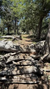 Bei der Rückkehr merke ich dann, dass mein Schuhwerk nicht ideal ist für solche Trips. Ich bleibe mit der linken Sandale an einem Stück Holz hängen, es schmerzt, es blutet, ist aber zum Glück nur eine Schramme. Als dasselbe kurze Zeit später nochmals passiert merke ich, dass ich vielleicht langsam müde bin. Und versuche nicht mehr die möglichst kleinen Wege zu nehmen, sondern folge dem Haupttrail. Den ich aber zwischendurch auch „verliere“.